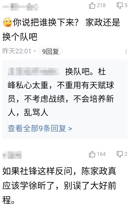 杜锋的这番话,也让广东球迷的评论区炸锅了,赛后不少广东球迷质问杜锋:当然是发挥不好的球员啊;演都不演了,原来广东阵容这么牛,一个单节20分的20岁新星,竟然连上场机会都不值得拥有?家政还是换个队吧,真该学徐昕了,别误了大好前程。
