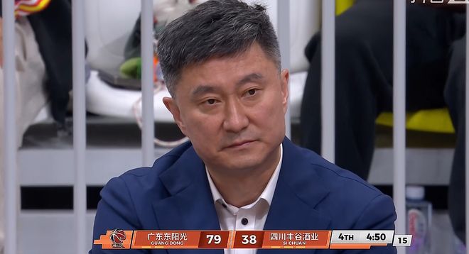 然而,在第四节陈家政打得风生水起阶段,镜头却捕捉到了杜锋此时的表情,节末还剩4分50秒,当广东队将分差扩大到79-38来到41分之际,此时场外杜锋的表情却十分耐人寻味,神情严肃完全看不出欣慰的表情,一直黑着脸仿佛广东队才是那个输了40+的队伍。