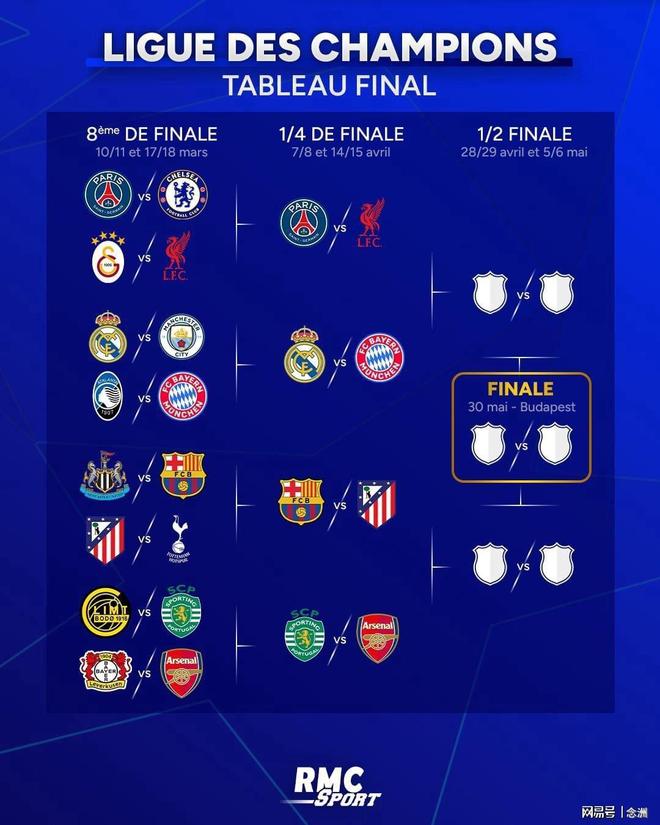 欧冠八强对阵出炉:阿森纳碰葡萄牙体育,皇马拜仁提前火并