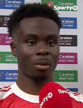 阿森纳0-2不敌曼城无缘英联杯冠军,阿森纳前锋萨卡赛后接受了SportyTV的采访。